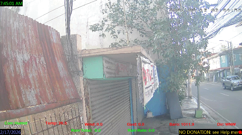 1 Rain season in the Philippines: June 1st to Oct 31st.   5 Estimated amount of water needed to replace the water used by plants and evaporation from the past week. (Negative numbers mean amount of water needed, positive numbers mean excess water is present).   6 Air Quality Index is provided by Luftdaten System esp8266 and is updated every 5 mins..   9 Solar Index represents either an absolute scale of solar energy (W/m²) using the station’s recorded maximum or a percentage of computed theoretical solar maximum using the station’s location and time of day. These indices differ most when the sun is low on the horizon. The current scale is shown, and will toggle if it or the icon is clicked.   10 Historical average only to day 16 of just the month of February for this station since 2016.   11 Historical average rain this season to day 16 of February for this station since 2016.