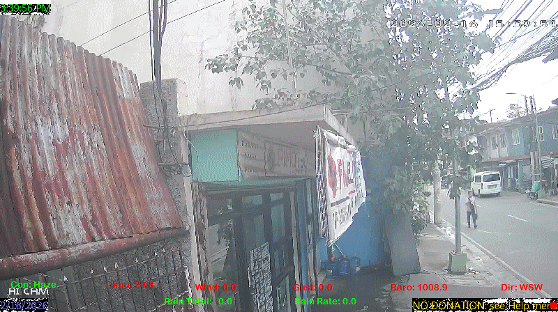 1 Rain season in the Philippines: June 1st to Oct 31st.   5 Estimated amount of water needed to replace the water used by plants and evaporation from the past week. (Negative numbers mean amount of water needed, positive numbers mean excess water is present).   6 Air Quality Index is provided by Luftdaten System esp8266 and is updated every 5 mins..   9 Solar Index represents either an absolute scale of solar energy (W/m²) using the station’s recorded maximum or a percentage of computed theoretical solar maximum using the station’s location and time of day. These indices differ most when the sun is low on the horizon. The current scale is shown, and will toggle if it or the icon is clicked.   10 Historical average only to day 16 of just the month of February for this station since 2016.   11 Historical average rain this season to day 16 of February for this station since 2016.