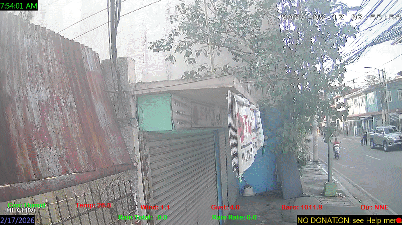 1 Rain season in the Philippines: June 1st to Oct 31st.   5 Estimated amount of water needed to replace the water used by plants and evaporation from the past week. (Negative numbers mean amount of water needed, positive numbers mean excess water is present).   6 Air Quality Index is provided by Luftdaten System esp8266 and is updated every 5 mins..   9 Solar Index represents either an absolute scale of solar energy (W/m²) using the station’s recorded maximum or a percentage of computed theoretical solar maximum using the station’s location and time of day. These indices differ most when the sun is low on the horizon. The current scale is shown, and will toggle if it or the icon is clicked.   10 Historical average only to day 17 of just the month of February for this station since 2016.   11 Historical average rain this season to day 17 of February for this station since 2016.