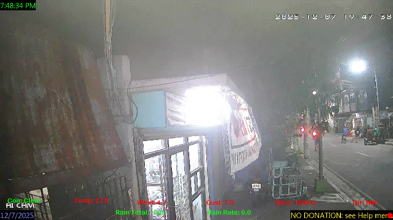 1 Rain season in the Philippines: June 1st to Oct 31st.   5 Estimated amount of water needed to replace the water used by plants and evaporation from the past week. (Negative numbers mean amount of water needed, positive numbers mean excess water is present).   6 Air Quality Index is provided by Luftdaten System esp8266 and is updated every 5 mins..   9 Solar Index represents either an absolute scale of solar energy (W/m²) using the station’s recorded maximum or a percentage of computed theoretical solar maximum using the station’s location and time of day. These indices differ most when the sun is low on the horizon. The current scale is shown, and will toggle if it or the icon is clicked.   10 Historical average only to day 7 of just the month of December for this station since 2016.   11 Historical average rain this season to day 7 of December for this station since 2016.