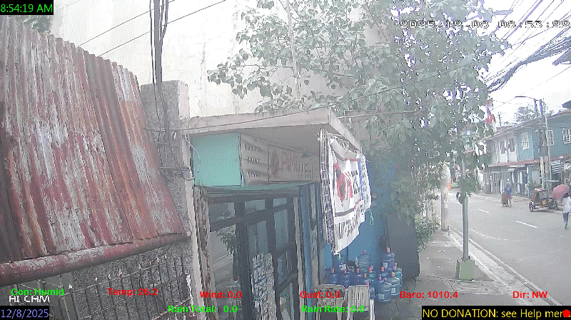 1 Rain season in the Philippines: June 1st to Oct 31st.   5 Estimated amount of water needed to replace the water used by plants and evaporation from the past week. (Negative numbers mean amount of water needed, positive numbers mean excess water is present).   6 Air Quality Index is provided by Luftdaten System esp8266 and is updated every 5 mins..   10 Historical average only to day 7 of just the month of December for this station since 2016.   11 Historical average rain this season to day 7 of December for this station since 2016.