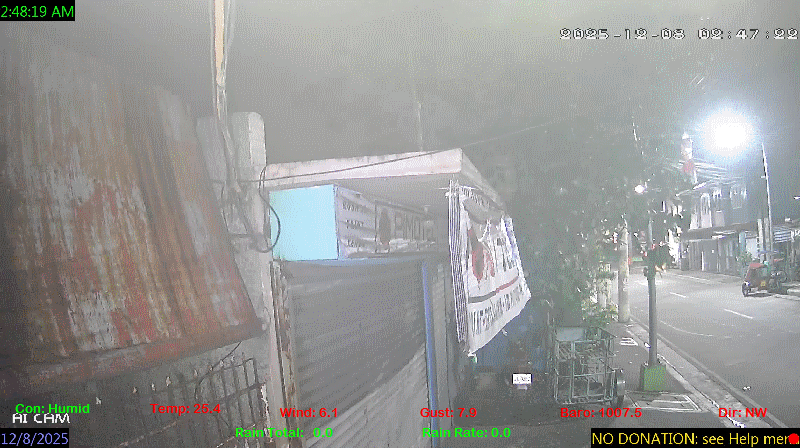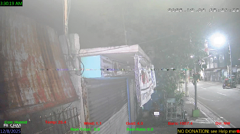 1 Rain season in the Philippines: June 1st to Oct 31st.   5 Estimated amount of water needed to replace the water used by plants and evaporation from the past week. (Negative numbers mean amount of water needed, positive numbers mean excess water is present).   6 Air Quality Index is provided by Luftdaten System esp8266 and is updated every 5 mins..   10 Historical average only to day 19 of just the month of November for this station since 2016.   11 Historical average rain this season to day 19 of November for this station since 2016.