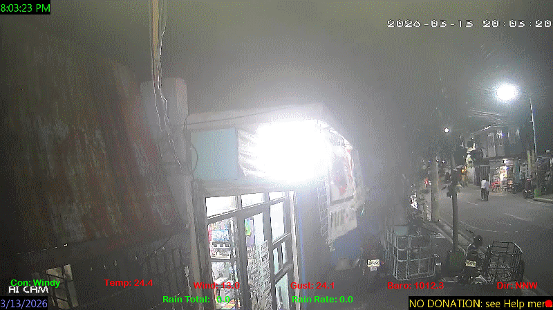 1 Rain season in the Philippines: June 1st to Oct 31st.   5 Estimated amount of water needed to replace the water used by plants and evaporation from the past week. (Negative numbers mean amount of water needed, positive numbers mean excess water is present).   6 Air Quality Index is provided by Luftdaten System esp8266 and is updated every 5 mins..   9 Solar Index represents either an absolute scale of solar energy (W/m²) using the station’s recorded maximum or a percentage of computed theoretical solar maximum using the station’s location and time of day. These indices differ most when the sun is low on the horizon. The current scale is shown, and will toggle if it or the icon is clicked.   10 Historical average only to day 13 of just the month of March for this station since 2016.   11 Historical average rain this season to day 13 of March for this station since 2016.