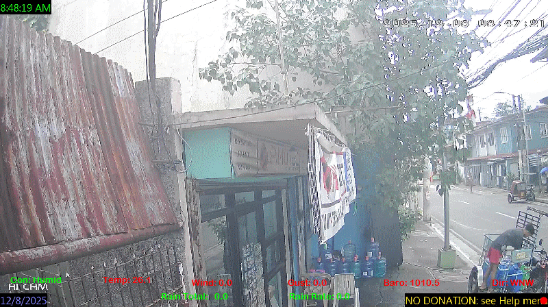 1 Rain season in the Philippines: June 1st to Oct 31st.   5 Estimated amount of water needed to replace the water used by plants and evaporation from the past week. (Negative numbers mean amount of water needed, positive numbers mean excess water is present).   6 Air Quality Index is provided by Luftdaten System esp8266 and is updated every 5 mins..   10 Historical average only to day 8 of just the month of December for this station since 2016.   11 Historical average rain this season to day 8 of December for this station since 2016.