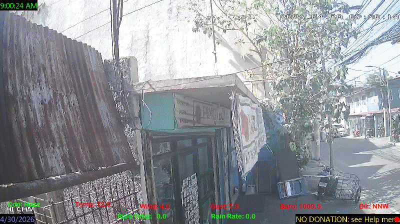 1 Rain season in the Philippines: June 1st to Oct 31st.   5 Estimated amount of water needed to replace the water used by plants and evaporation from the past week. (Negative numbers mean amount of water needed, positive numbers mean excess water is present).   6 Air Quality Index is provided by Luftdaten System esp8266 and is updated every 5 mins..   9 Solar Index represents either an absolute scale of solar energy (W/m²) using the station’s recorded maximum or a percentage of computed theoretical solar maximum using the station’s location and time of day. These indices differ most when the sun is low on the horizon. The current scale is shown, and will toggle if it or the icon is clicked.   10 Historical average only to day 30 of just the month of April for this station since 2017.   11 Historical average rain this season to day 30 of April for this station since 2017.