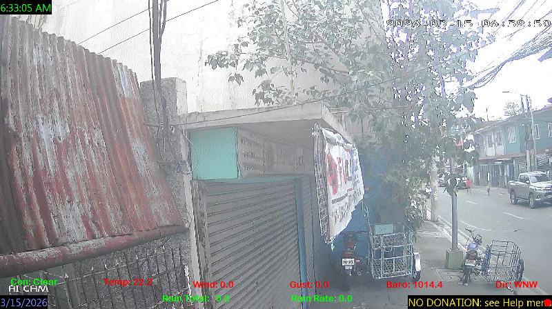 1 Rain season in the Philippines: June 1st to Oct 31st.   5 Estimated amount of water needed to replace the water used by plants and evaporation from the past week. (Negative numbers mean amount of water needed, positive numbers mean excess water is present).   6 Air Quality Index is provided by Luftdaten System esp8266 and is updated every 5 mins..   10 Historical average only to day 15 of just the month of March for this station since 2016.   11 Historical average rain this season to day 15 of March for this station since 2016.