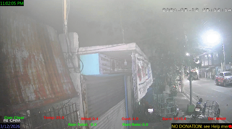 1 Rain season in the Philippines: June 1st to Oct 31st.   5 Estimated amount of water needed to replace the water used by plants and evaporation from the past week. (Negative numbers mean amount of water needed, positive numbers mean excess water is present).   6 Air Quality Index is provided by Luftdaten System esp8266 and is updated every 5 mins..   10 Historical average only to day 12 of just the month of March for this station since 2016.   11 Historical average rain this season to day 12 of March for this station since 2016.
