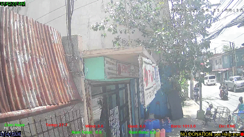 1 Rain season in the Philippines: June 1st to Oct 31st.   5 Estimated amount of water needed to replace the water used by plants and evaporation from the past week. (Negative numbers mean amount of water needed, positive numbers mean excess water is present).   6 Air Quality Index is provided by Luftdaten System esp8266 and is updated every 5 mins..   9 Solar Index represents either an absolute scale of solar energy (W/m²) using the station’s recorded maximum or a percentage of computed theoretical solar maximum using the station’s location and time of day. These indices differ most when the sun is low on the horizon. The current scale is shown, and will toggle if it or the icon is clicked.   10 Historical average only to day 14 of just the month of March for this station since 2016.   11 Historical average rain this season to day 14 of March for this station since 2016.