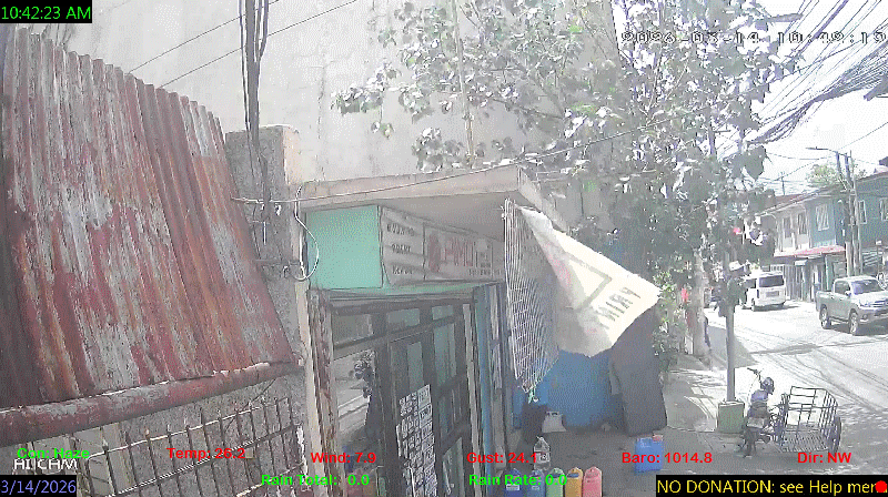 1 Rain season in the Philippines: June 1st to Oct 31st.   5 Estimated amount of water needed to replace the water used by plants and evaporation from the past week. (Negative numbers mean amount of water needed, positive numbers mean excess water is present).   6 Air Quality Index is provided by Luftdaten System esp8266 and is updated every 5 mins..   10 Historical average only to day 14 of just the month of March for this station since 2016.   11 Historical average rain this season to day 14 of March for this station since 2016.