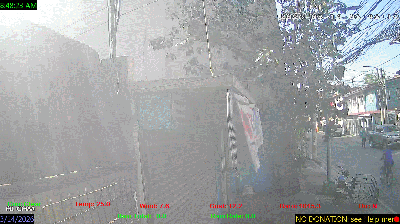 1 Rain season in the Philippines: June 1st to Oct 31st.   5 Estimated amount of water needed to replace the water used by plants and evaporation from the past week. (Negative numbers mean amount of water needed, positive numbers mean excess water is present).   6 Air Quality Index is provided by Luftdaten System esp8266 and is updated every 5 mins..   10 Historical average only to day 14 of just the month of March for this station since 2016.   11 Historical average rain this season to day 14 of March for this station since 2016.