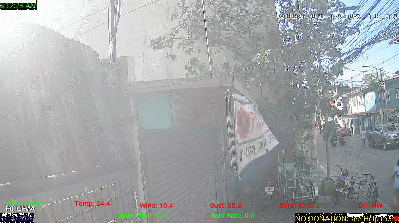 1 Rain season in the Philippines: June 1st to Oct 31st.   5 Estimated amount of water needed to replace the water used by plants and evaporation from the past week. (Negative numbers mean amount of water needed, positive numbers mean excess water is present).   6 Air Quality Index is provided by Luftdaten System esp8266 and is updated every 5 mins..   10 Historical average only to day 14 of just the month of March for this station since 2016.   11 Historical average rain this season to day 14 of March for this station since 2016.