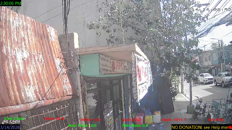 1 Rain season in the Philippines: June 1st to Oct 31st.   5 Estimated amount of water needed to replace the water used by plants and evaporation from the past week. (Negative numbers mean amount of water needed, positive numbers mean excess water is present).   6 Air Quality Index is provided by Luftdaten System esp8266 and is updated every 5 mins..   9 Solar Index represents either an absolute scale of solar energy (W/m²) using the station’s recorded maximum or a percentage of computed theoretical solar maximum using the station’s location and time of day. These indices differ most when the sun is low on the horizon. The current scale is shown, and will toggle if it or the icon is clicked.   10 Historical average only to day 14 of just the month of March for this station since 2016.   11 Historical average rain this season to day 14 of March for this station since 2016.