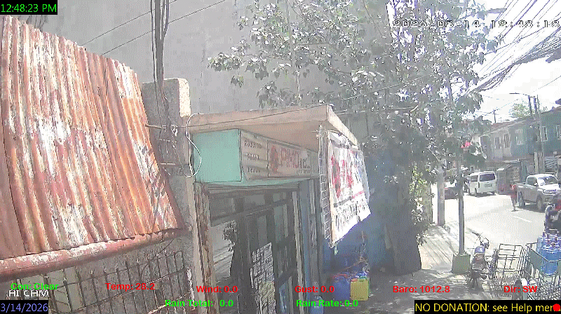 1 Rain season in the Philippines: June 1st to Oct 31st.   5 Estimated amount of water needed to replace the water used by plants and evaporation from the past week. (Negative numbers mean amount of water needed, positive numbers mean excess water is present).   6 Air Quality Index is provided by Luftdaten System esp8266 and is updated every 5 mins..   9 Solar Index represents either an absolute scale of solar energy (W/m²) using the station’s recorded maximum or a percentage of computed theoretical solar maximum using the station’s location and time of day. These indices differ most when the sun is low on the horizon. The current scale is shown, and will toggle if it or the icon is clicked.   10 Historical average only to day 14 of just the month of March for this station since 2016.   11 Historical average rain this season to day 14 of March for this station since 2016.