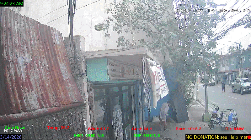 1 Rain season in the Philippines: June 1st to Oct 31st.   5 Estimated amount of water needed to replace the water used by plants and evaporation from the past week. (Negative numbers mean amount of water needed, positive numbers mean excess water is present).   6 Air Quality Index is provided by Luftdaten System esp8266 and is updated every 5 mins..   10 Historical average only to day 14 of just the month of March for this station since 2016.   11 Historical average rain this season to day 14 of March for this station since 2016.