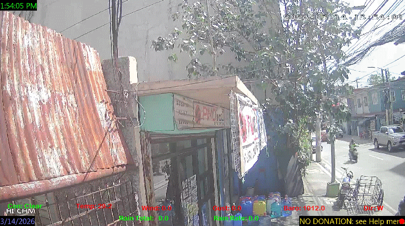 1 Rain season in the Philippines: June 1st to Oct 31st.   5 Estimated amount of water needed to replace the water used by plants and evaporation from the past week. (Negative numbers mean amount of water needed, positive numbers mean excess water is present).   6 Air Quality Index is provided by Luftdaten System esp8266 and is updated every 5 mins..   9 Solar Index represents either an absolute scale of solar energy (W/m²) using the station’s recorded maximum or a percentage of computed theoretical solar maximum using the station’s location and time of day. These indices differ most when the sun is low on the horizon. The current scale is shown, and will toggle if it or the icon is clicked.   10 Historical average only to day 14 of just the month of March for this station since 2016.   11 Historical average rain this season to day 14 of March for this station since 2016.