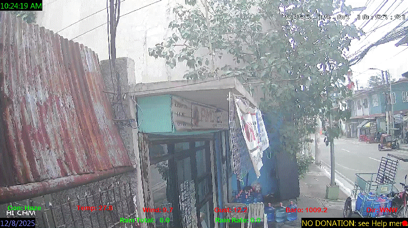 1 Rain season in the Philippines: June 1st to Oct 31st.   5 Estimated amount of water needed to replace the water used by plants and evaporation from the past week. (Negative numbers mean amount of water needed, positive numbers mean excess water is present).   6 Air Quality Index is provided by Luftdaten System esp8266 and is updated every 5 mins..   9 Solar Index represents either an absolute scale of solar energy (W/m²) using the station’s recorded maximum or a percentage of computed theoretical solar maximum using the station’s location and time of day. These indices differ most when the sun is low on the horizon. The current scale is shown, and will toggle if it or the icon is clicked.   10 Historical average only to day 8 of just the month of December for this station since 2016.   11 Historical average rain this season to day 8 of December for this station since 2016.