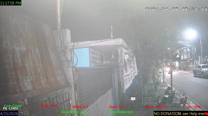 1 Rain season in the Philippines: June 1st to Oct 31st.   5 Estimated amount of water needed to replace the water used by plants and evaporation from the past week. (Negative numbers mean amount of water needed, positive numbers mean excess water is present).   6 Air Quality Index is provided by Luftdaten System esp8266 and is updated every 5 mins..   10 Historical average only to day 25 of just the month of April for this station since 2017.   11 Historical average rain this season to day 25 of April for this station since 2017.