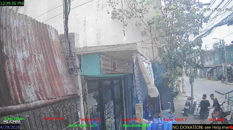 1 Rain season in the Philippines: June 1st to Oct 31st.   5 Estimated amount of water needed to replace the water used by plants and evaporation from the past week. (Negative numbers mean amount of water needed, positive numbers mean excess water is present).   6 Air Quality Index is provided by Luftdaten System esp8266 and is updated every 5 mins..   9 Solar Index represents either an absolute scale of solar energy (W/m²) using the station’s recorded maximum or a percentage of computed theoretical solar maximum using the station’s location and time of day. These indices differ most when the sun is low on the horizon. The current scale is shown, and will toggle if it or the icon is clicked.   10 Historical average only to day 29 of just the month of April for this station since 2017.   11 Historical average rain this season to day 29 of April for this station since 2017.