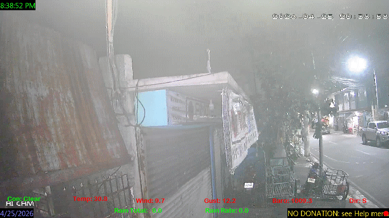1 Rain season in the Philippines: June 1st to Oct 31st.   5 Estimated amount of water needed to replace the water used by plants and evaporation from the past week. (Negative numbers mean amount of water needed, positive numbers mean excess water is present).   6 Air Quality Index is provided by Luftdaten System esp8266 and is updated every 5 mins..   10 Historical average only to day 24 of just the month of April for this station since 2017.   11 Historical average rain this season to day 24 of April for this station since 2017.