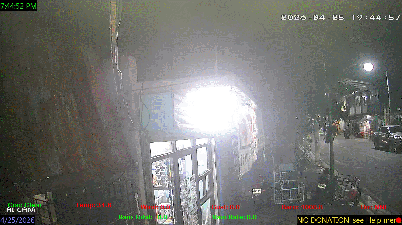 1 Rain season in the Philippines: June 1st to Oct 31st.   5 Estimated amount of water needed to replace the water used by plants and evaporation from the past week. (Negative numbers mean amount of water needed, positive numbers mean excess water is present).   6 Air Quality Index is provided by Luftdaten System esp8266 and is updated every 5 mins..   9 Solar Index represents either an absolute scale of solar energy (W/m²) using the station’s recorded maximum or a percentage of computed theoretical solar maximum using the station’s location and time of day. These indices differ most when the sun is low on the horizon. The current scale is shown, and will toggle if it or the icon is clicked.   10 Historical average only to day 25 of just the month of April for this station since 2017.   11 Historical average rain this season to day 25 of April for this station since 2017.