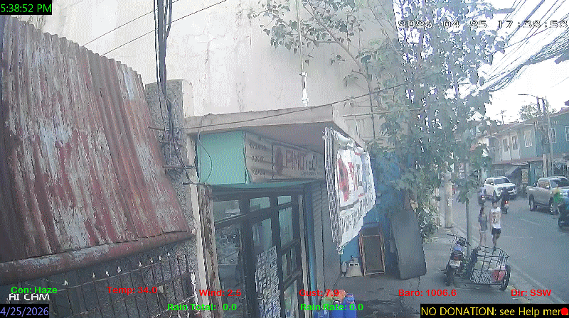 1 Rain season in the Philippines: June 1st to Oct 31st.   5 Estimated amount of water needed to replace the water used by plants and evaporation from the past week. (Negative numbers mean amount of water needed, positive numbers mean excess water is present).   6 Air Quality Index is provided by Luftdaten System esp8266 and is updated every 5 mins..   10 Historical average only to day 23 of just the month of April for this station since 2017.   11 Historical average rain this season to day 23 of April for this station since 2017.