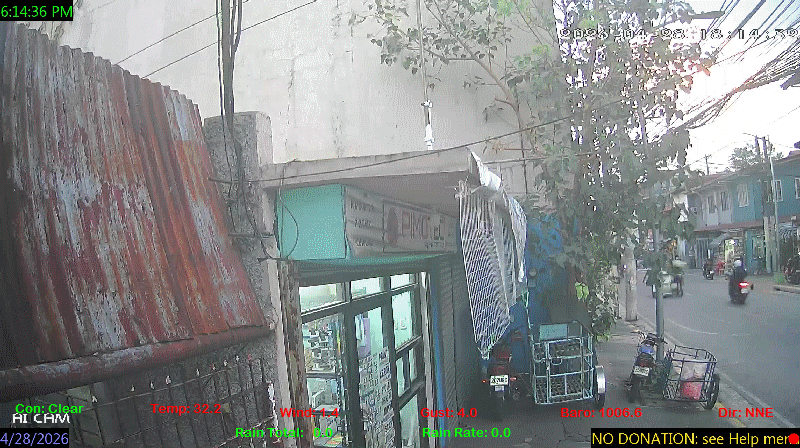 1 Rain season in the Philippines: June 1st to Oct 31st.   5 Estimated amount of water needed to replace the water used by plants and evaporation from the past week. (Negative numbers mean amount of water needed, positive numbers mean excess water is present).   6 Air Quality Index is provided by Luftdaten System esp8266 and is updated every 5 mins..   10 Historical average only to day 26 of just the month of April for this station since 2017.   11 Historical average rain this season to day 26 of April for this station since 2017.