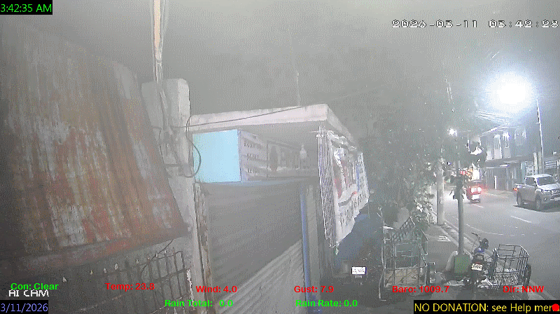1 Rain season in the Philippines: June 1st to Oct 31st.   5 Estimated amount of water needed to replace the water used by plants and evaporation from the past week. (Negative numbers mean amount of water needed, positive numbers mean excess water is present).   6 Air Quality Index is provided by Luftdaten System esp8266 and is updated every 5 mins..   9 Solar Index represents either an absolute scale of solar energy (W/m²) using the station’s recorded maximum or a percentage of computed theoretical solar maximum using the station’s location and time of day. These indices differ most when the sun is low on the horizon. The current scale is shown, and will toggle if it or the icon is clicked.   10 Historical average only to day 11 of just the month of March for this station since 2016.   11 Historical average rain this season to day 11 of March for this station since 2016.