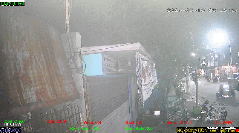 1 Rain season in the Philippines: June 1st to Oct 31st.   5 Estimated amount of water needed to replace the water used by plants and evaporation from the past week. (Negative numbers mean amount of water needed, positive numbers mean excess water is present).   6 Air Quality Index is provided by Luftdaten System esp8266 and is updated every 5 mins..   9 Solar Index represents either an absolute scale of solar energy (W/m²) using the station’s recorded maximum or a percentage of computed theoretical solar maximum using the station’s location and time of day. These indices differ most when the sun is low on the horizon. The current scale is shown, and will toggle if it or the icon is clicked.   10 Historical average only to day 13 of just the month of February for this station since 2016.   11 Historical average rain this season to day 13 of February for this station since 2016.