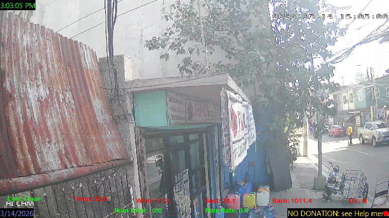 1 Rain season in the Philippines: June 1st to Oct 31st.   5 Estimated amount of water needed to replace the water used by plants and evaporation from the past week. (Negative numbers mean amount of water needed, positive numbers mean excess water is present).   6 Air Quality Index is provided by Luftdaten System esp8266 and is updated every 5 mins..   9 Solar Index represents either an absolute scale of solar energy (W/m²) using the station’s recorded maximum or a percentage of computed theoretical solar maximum using the station’s location and time of day. These indices differ most when the sun is low on the horizon. The current scale is shown, and will toggle if it or the icon is clicked.   10 Historical average only to day 14 of just the month of March for this station since 2016.   11 Historical average rain this season to day 14 of March for this station since 2016.