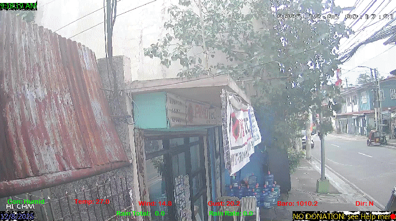1 Rain season in the Philippines: June 1st to Oct 31st.   5 Estimated amount of water needed to replace the water used by plants and evaporation from the past week. (Negative numbers mean amount of water needed, positive numbers mean excess water is present).   6 Air Quality Index is provided by Luftdaten System esp8266 and is updated every 5 mins..   9 Solar Index represents either an absolute scale of solar energy (W/m²) using the station’s recorded maximum or a percentage of computed theoretical solar maximum using the station’s location and time of day. These indices differ most when the sun is low on the horizon. The current scale is shown, and will toggle if it or the icon is clicked.   10 Historical average only to day 8 of just the month of December for this station since 2016.   11 Historical average rain this season to day 8 of December for this station since 2016.