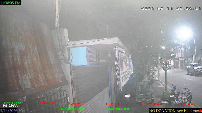 1 Rain season in the Philippines: June 1st to Oct 31st.   5 Estimated amount of water needed to replace the water used by plants and evaporation from the past week. (Negative numbers mean amount of water needed, positive numbers mean excess water is present).   6 Air Quality Index is provided by Luftdaten System esp8266 and is updated every 5 mins..   9 Solar Index represents either an absolute scale of solar energy (W/m²) using the station’s recorded maximum or a percentage of computed theoretical solar maximum using the station’s location and time of day. These indices differ most when the sun is low on the horizon. The current scale is shown, and will toggle if it or the icon is clicked.   10 Historical average only to day 14 of just the month of March for this station since 2016.   11 Historical average rain this season to day 14 of March for this station since 2016.