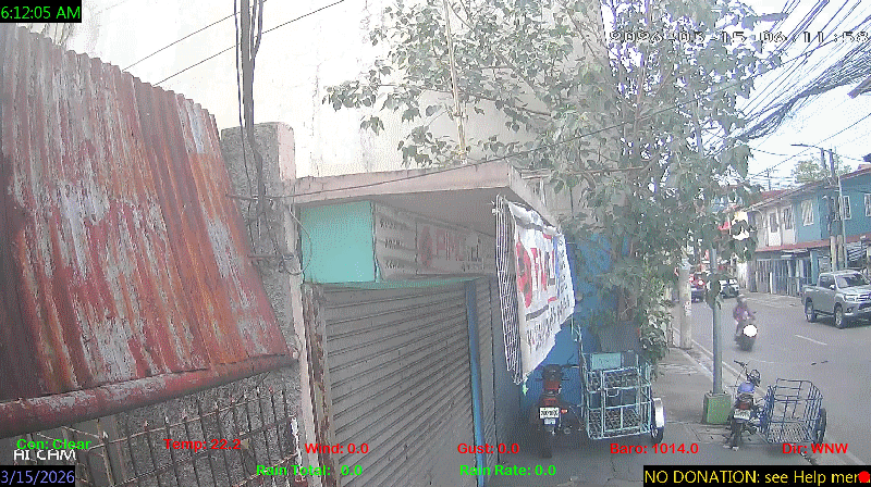 1 Rain season in the Philippines: June 1st to Oct 31st.   5 Estimated amount of water needed to replace the water used by plants and evaporation from the past week. (Negative numbers mean amount of water needed, positive numbers mean excess water is present).   6 Air Quality Index is provided by Luftdaten System esp8266 and is updated every 5 mins..   10 Historical average only to day 15 of just the month of March for this station since 2016.   11 Historical average rain this season to day 15 of March for this station since 2016.