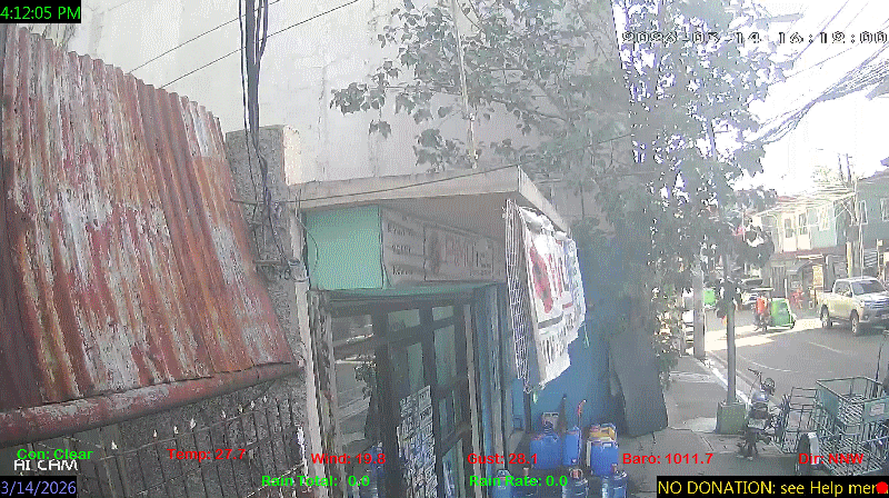 1 Rain season in the Philippines: June 1st to Oct 31st.   5 Estimated amount of water needed to replace the water used by plants and evaporation from the past week. (Negative numbers mean amount of water needed, positive numbers mean excess water is present).   6 Air Quality Index is provided by Luftdaten System esp8266 and is updated every 5 mins..   9 Solar Index represents either an absolute scale of solar energy (W/m²) using the station’s recorded maximum or a percentage of computed theoretical solar maximum using the station’s location and time of day. These indices differ most when the sun is low on the horizon. The current scale is shown, and will toggle if it or the icon is clicked.   10 Historical average only to day 14 of just the month of March for this station since 2016.   11 Historical average rain this season to day 14 of March for this station since 2016.