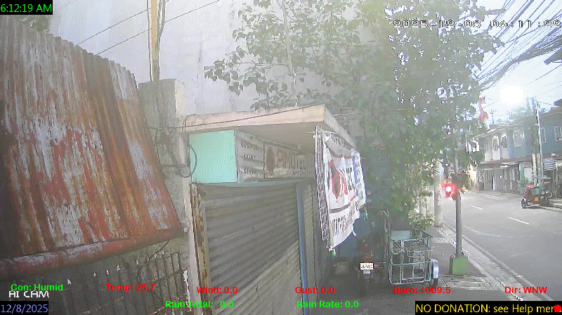 1 Rain season in the Philippines: June 1st to Oct 31st.   5 Estimated amount of water needed to replace the water used by plants and evaporation from the past week. (Negative numbers mean amount of water needed, positive numbers mean excess water is present).   6 Air Quality Index is provided by Luftdaten System esp8266 and is updated every 5 mins..   10 Historical average only to day 7 of just the month of December for this station since 2016.   11 Historical average rain this season to day 7 of December for this station since 2016.