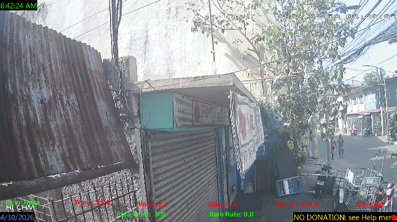 1 Rain season in the Philippines: June 1st to Oct 31st.   5 Estimated amount of water needed to replace the water used by plants and evaporation from the past week. (Negative numbers mean amount of water needed, positive numbers mean excess water is present).   6 Air Quality Index is provided by Luftdaten System esp8266 and is updated every 5 mins..   9 Solar Index represents either an absolute scale of solar energy (W/m²) using the station’s recorded maximum or a percentage of computed theoretical solar maximum using the station’s location and time of day. These indices differ most when the sun is low on the horizon. The current scale is shown, and will toggle if it or the icon is clicked.   10 Historical average only to day 30 of just the month of April for this station since 2017.   11 Historical average rain this season to day 30 of April for this station since 2017.