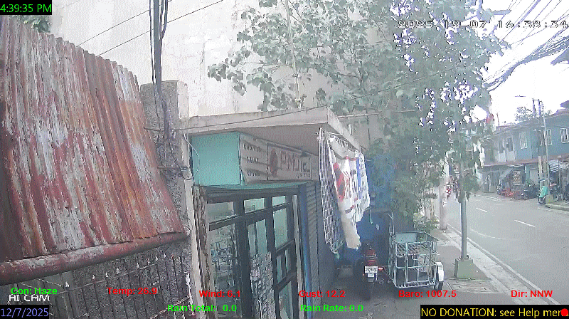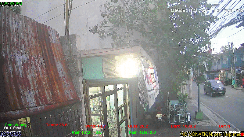 1 Rain season in the Philippines: June 1st to Oct 31st.   5 Estimated amount of water needed to replace the water used by plants and evaporation from the past week. (Negative numbers mean amount of water needed, positive numbers mean excess water is present).   6 Air Quality Index is provided by Luftdaten System esp8266 and is updated every 5 mins..   9 Solar Index represents either an absolute scale of solar energy (W/m²) using the station’s recorded maximum or a percentage of computed theoretical solar maximum using the station’s location and time of day. These indices differ most when the sun is low on the horizon. The current scale is shown, and will toggle if it or the icon is clicked.   10 Historical average only to day 7 of just the month of December for this station since 2016.   11 Historical average rain this season to day 7 of December for this station since 2016.