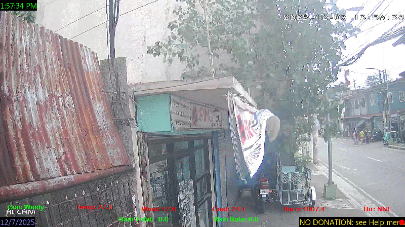 1 Rain season in the Philippines: June 1st to Oct 31st.   5 Estimated amount of water needed to replace the water used by plants and evaporation from the past week. (Negative numbers mean amount of water needed, positive numbers mean excess water is present).   6 Air Quality Index is provided by Luftdaten System esp8266 and is updated every 5 mins..   10 Historical average only to day 19 of just the month of November for this station since 2016.   11 Historical average rain this season to day 19 of November for this station since 2016.
