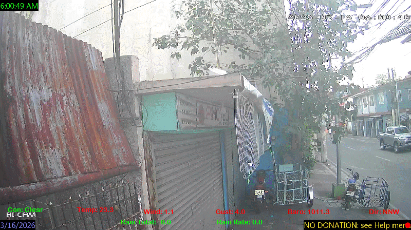 1 Rain season in the Philippines: June 1st to Oct 31st.   5 Estimated amount of water needed to replace the water used by plants and evaporation from the past week. (Negative numbers mean amount of water needed, positive numbers mean excess water is present).   6 Air Quality Index is provided by Luftdaten System esp8266 and is updated every 5 mins..   10 Historical average only to day 16 of just the month of March for this station since 2016.   11 Historical average rain this season to day 16 of March for this station since 2016.