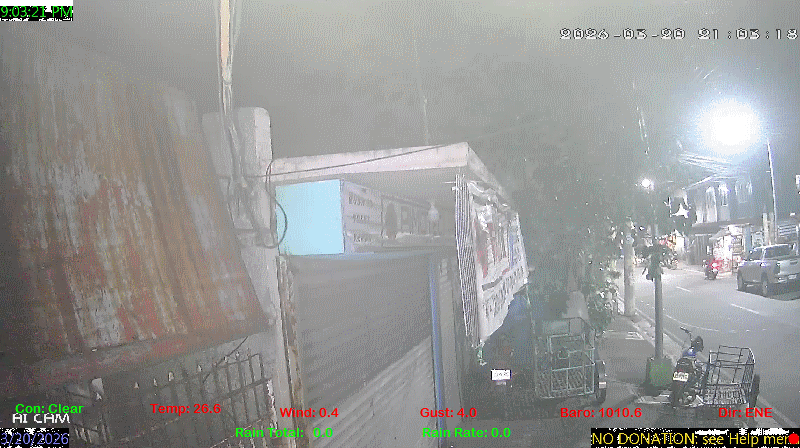 1 Rain season in the Philippines: June 1st to Oct 31st.   5 Estimated amount of water needed to replace the water used by plants and evaporation from the past week. (Negative numbers mean amount of water needed, positive numbers mean excess water is present).   6 Air Quality Index is provided by Luftdaten System esp8266 and is updated every 5 mins..   9 Solar Index represents either an absolute scale of solar energy (W/m²) using the station’s recorded maximum or a percentage of computed theoretical solar maximum using the station’s location and time of day. These indices differ most when the sun is low on the horizon. The current scale is shown, and will toggle if it or the icon is clicked.   10 Historical average only to day 20 of just the month of March for this station since 2016.   11 Historical average rain this season to day 20 of March for this station since 2016.