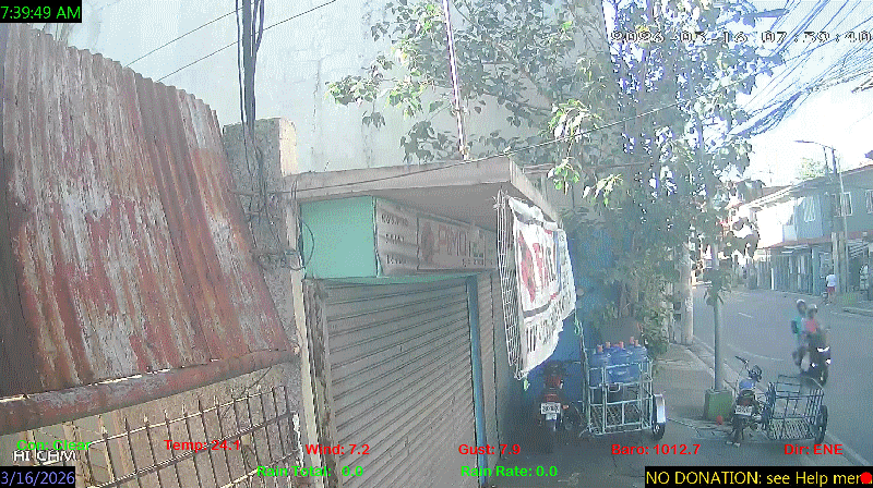 1 Rain season in the Philippines: June 1st to Oct 31st.   5 Estimated amount of water needed to replace the water used by plants and evaporation from the past week. (Negative numbers mean amount of water needed, positive numbers mean excess water is present).   6 Air Quality Index is provided by Luftdaten System esp8266 and is updated every 5 mins..   9 Solar Index represents either an absolute scale of solar energy (W/m²) using the station’s recorded maximum or a percentage of computed theoretical solar maximum using the station’s location and time of day. These indices differ most when the sun is low on the horizon. The current scale is shown, and will toggle if it or the icon is clicked.   10 Historical average only to day 16 of just the month of March for this station since 2016.   11 Historical average rain this season to day 16 of March for this station since 2016.
