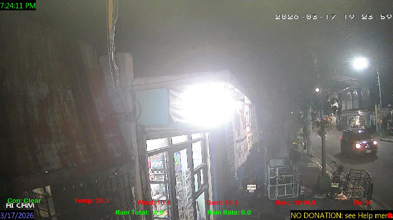 1 Rain season in the Philippines: June 1st to Oct 31st.   5 Estimated amount of water needed to replace the water used by plants and evaporation from the past week. (Negative numbers mean amount of water needed, positive numbers mean excess water is present).   6 Air Quality Index is provided by Luftdaten System esp8266 and is updated every 5 mins..   9 Solar Index represents either an absolute scale of solar energy (W/m²) using the station’s recorded maximum or a percentage of computed theoretical solar maximum using the station’s location and time of day. These indices differ most when the sun is low on the horizon. The current scale is shown, and will toggle if it or the icon is clicked.   10 Historical average only to day 17 of just the month of March for this station since 2016.   11 Historical average rain this season to day 17 of March for this station since 2016.