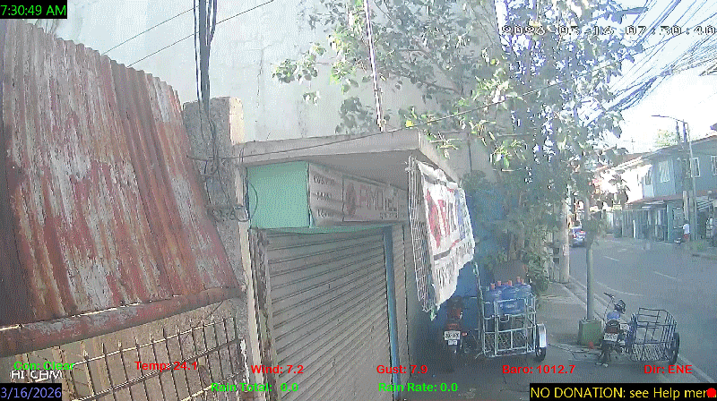 1 Rain season in the Philippines: June 1st to Oct 31st.   5 Estimated amount of water needed to replace the water used by plants and evaporation from the past week. (Negative numbers mean amount of water needed, positive numbers mean excess water is present).   6 Air Quality Index is provided by Luftdaten System esp8266 and is updated every 5 mins..   10 Historical average only to day 16 of just the month of March for this station since 2016.   11 Historical average rain this season to day 16 of March for this station since 2016.
