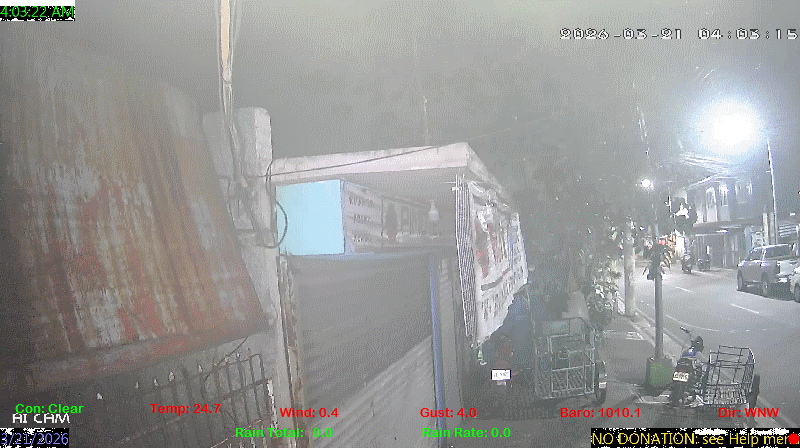1 Rain season in the Philippines: June 1st to Oct 31st.   5 Estimated amount of water needed to replace the water used by plants and evaporation from the past week. (Negative numbers mean amount of water needed, positive numbers mean excess water is present).   6 Air Quality Index is provided by Luftdaten System esp8266 and is updated every 5 mins..   9 Solar Index represents either an absolute scale of solar energy (W/m²) using the station’s recorded maximum or a percentage of computed theoretical solar maximum using the station’s location and time of day. These indices differ most when the sun is low on the horizon. The current scale is shown, and will toggle if it or the icon is clicked.   10 Historical average only to day 20 of just the month of March for this station since 2016.   11 Historical average rain this season to day 20 of March for this station since 2016.