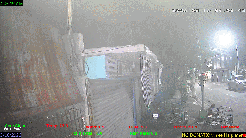 1 Rain season in the Philippines: June 1st to Oct 31st.   5 Estimated amount of water needed to replace the water used by plants and evaporation from the past week. (Negative numbers mean amount of water needed, positive numbers mean excess water is present).   6 Air Quality Index is provided by Luftdaten System esp8266 and is updated every 5 mins..   9 Solar Index represents either an absolute scale of solar energy (W/m²) using the station’s recorded maximum or a percentage of computed theoretical solar maximum using the station’s location and time of day. These indices differ most when the sun is low on the horizon. The current scale is shown, and will toggle if it or the icon is clicked.   10 Historical average only to day 15 of just the month of March for this station since 2016.   11 Historical average rain this season to day 15 of March for this station since 2016.