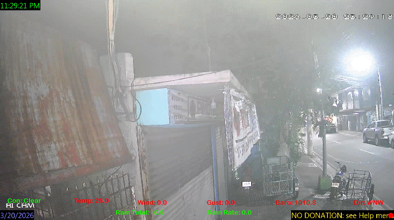 1 Rain season in the Philippines: June 1st to Oct 31st.   5 Estimated amount of water needed to replace the water used by plants and evaporation from the past week. (Negative numbers mean amount of water needed, positive numbers mean excess water is present).   6 Air Quality Index is provided by Luftdaten System esp8266 and is updated every 5 mins..   10 Historical average only to day 20 of just the month of March for this station since 2016.   11 Historical average rain this season to day 20 of March for this station since 2016.