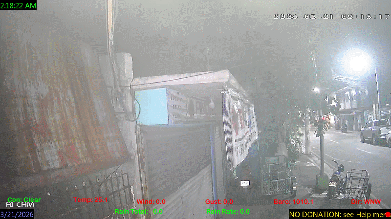 1 Rain season in the Philippines: June 1st to Oct 31st.   5 Estimated amount of water needed to replace the water used by plants and evaporation from the past week. (Negative numbers mean amount of water needed, positive numbers mean excess water is present).   6 Air Quality Index is provided by Luftdaten System esp8266 and is updated every 5 mins..   10 Historical average only to day 21 of just the month of March for this station since 2016.   11 Historical average rain this season to day 21 of March for this station since 2016.