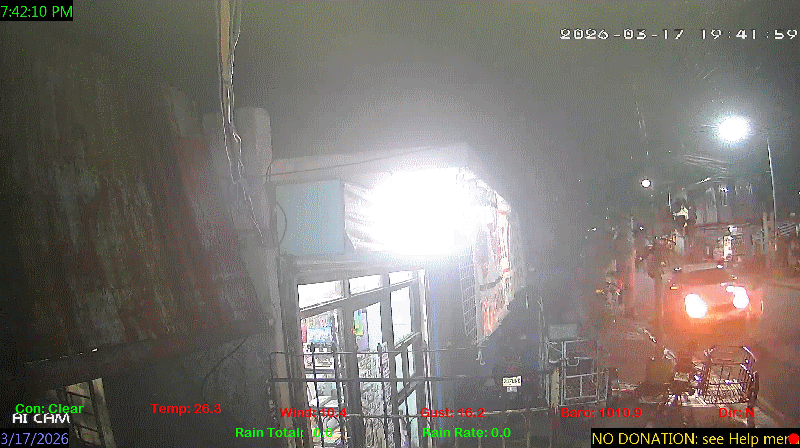 1 Rain season in the Philippines: June 1st to Oct 31st.   5 Estimated amount of water needed to replace the water used by plants and evaporation from the past week. (Negative numbers mean amount of water needed, positive numbers mean excess water is present).   6 Air Quality Index is provided by Luftdaten System esp8266 and is updated every 5 mins..   9 Solar Index represents either an absolute scale of solar energy (W/m²) using the station’s recorded maximum or a percentage of computed theoretical solar maximum using the station’s location and time of day. These indices differ most when the sun is low on the horizon. The current scale is shown, and will toggle if it or the icon is clicked.   10 Historical average only to day 17 of just the month of March for this station since 2016.   11 Historical average rain this season to day 17 of March for this station since 2016.