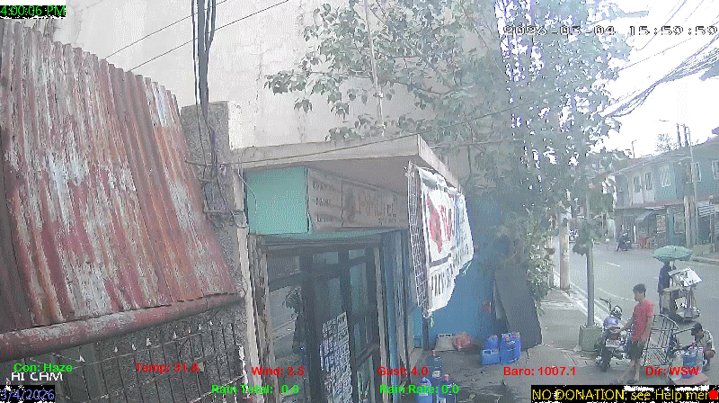 1 Rain season in the Philippines: June 1st to Oct 31st.   5 Estimated amount of water needed to replace the water used by plants and evaporation from the past week. (Negative numbers mean amount of water needed, positive numbers mean excess water is present).   6 Air Quality Index is provided by Luftdaten System esp8266 and is updated every 5 mins..   9 Solar Index represents either an absolute scale of solar energy (W/m²) using the station’s recorded maximum or a percentage of computed theoretical solar maximum using the station’s location and time of day. These indices differ most when the sun is low on the horizon. The current scale is shown, and will toggle if it or the icon is clicked.   10 Historical average only to day 4 of just the month of March for this station since 2016.   11 Historical average rain this season to day 4 of March for this station since 2016.