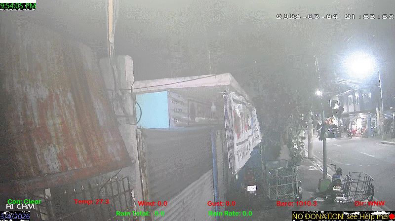 1 Rain season in the Philippines: June 1st to Oct 31st.   5 Estimated amount of water needed to replace the water used by plants and evaporation from the past week. (Negative numbers mean amount of water needed, positive numbers mean excess water is present).   6 Air Quality Index is provided by Luftdaten System esp8266 and is updated every 5 mins..   9 Solar Index represents either an absolute scale of solar energy (W/m²) using the station’s recorded maximum or a percentage of computed theoretical solar maximum using the station’s location and time of day. These indices differ most when the sun is low on the horizon. The current scale is shown, and will toggle if it or the icon is clicked.   10 Historical average only to day 4 of just the month of March for this station since 2016.   11 Historical average rain this season to day 4 of March for this station since 2016.