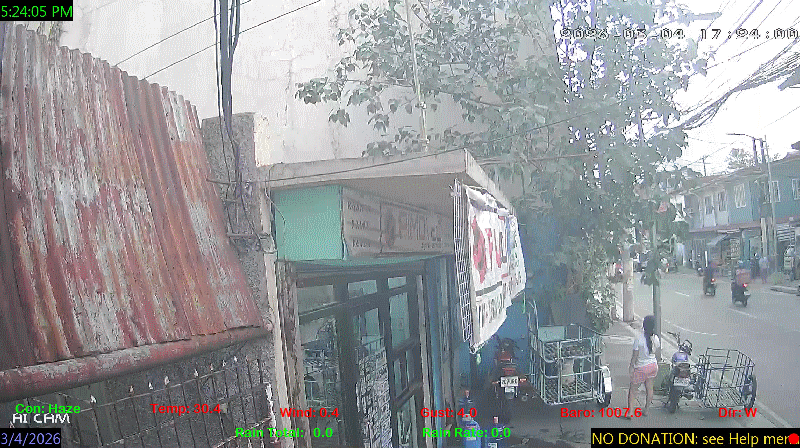 1 Rain season in the Philippines: June 1st to Oct 31st.   5 Estimated amount of water needed to replace the water used by plants and evaporation from the past week. (Negative numbers mean amount of water needed, positive numbers mean excess water is present).   6 Air Quality Index is provided by Luftdaten System esp8266 and is updated every 5 mins..   9 Solar Index represents either an absolute scale of solar energy (W/m²) using the station’s recorded maximum or a percentage of computed theoretical solar maximum using the station’s location and time of day. These indices differ most when the sun is low on the horizon. The current scale is shown, and will toggle if it or the icon is clicked.   10 Historical average only to day 4 of just the month of March for this station since 2016.   11 Historical average rain this season to day 4 of March for this station since 2016.